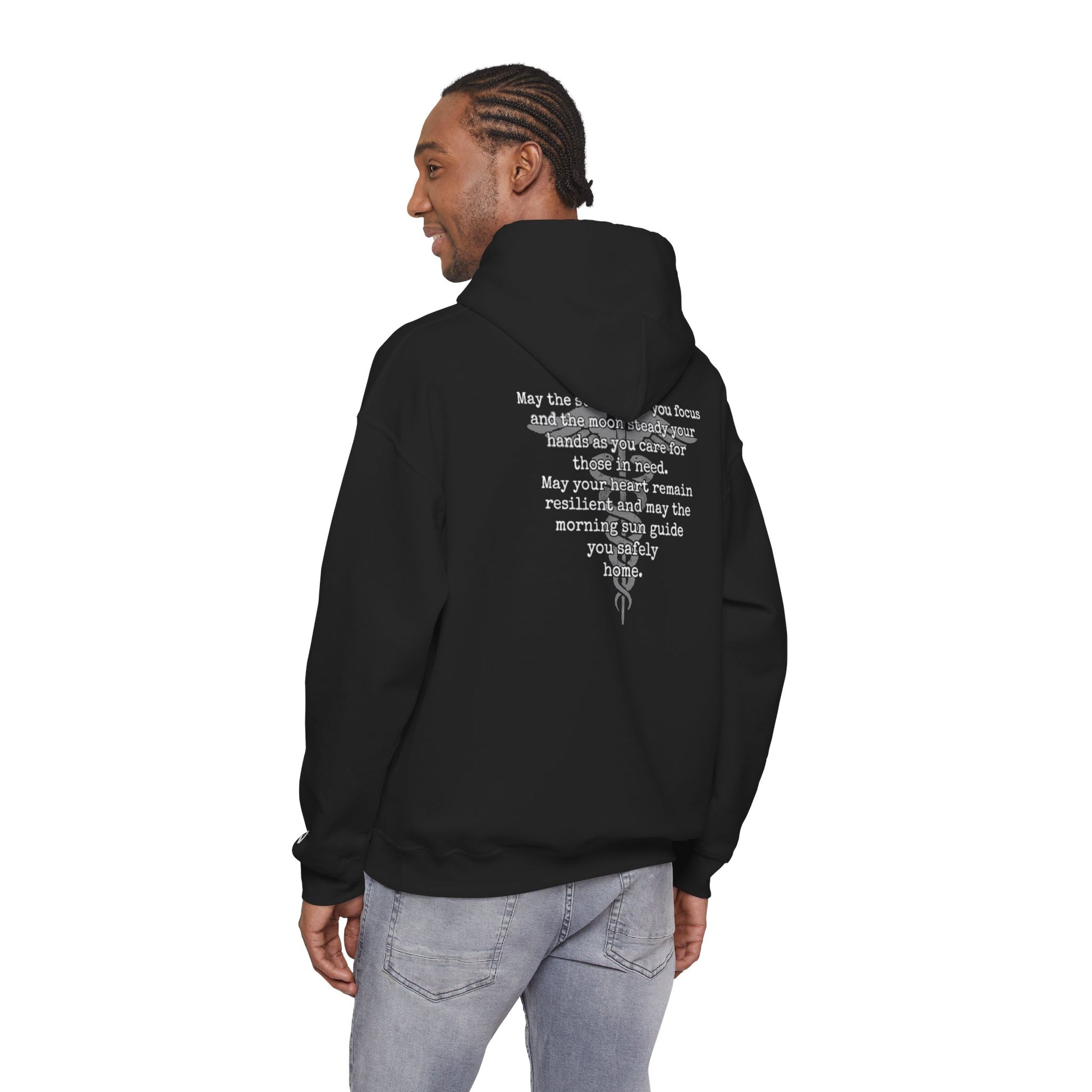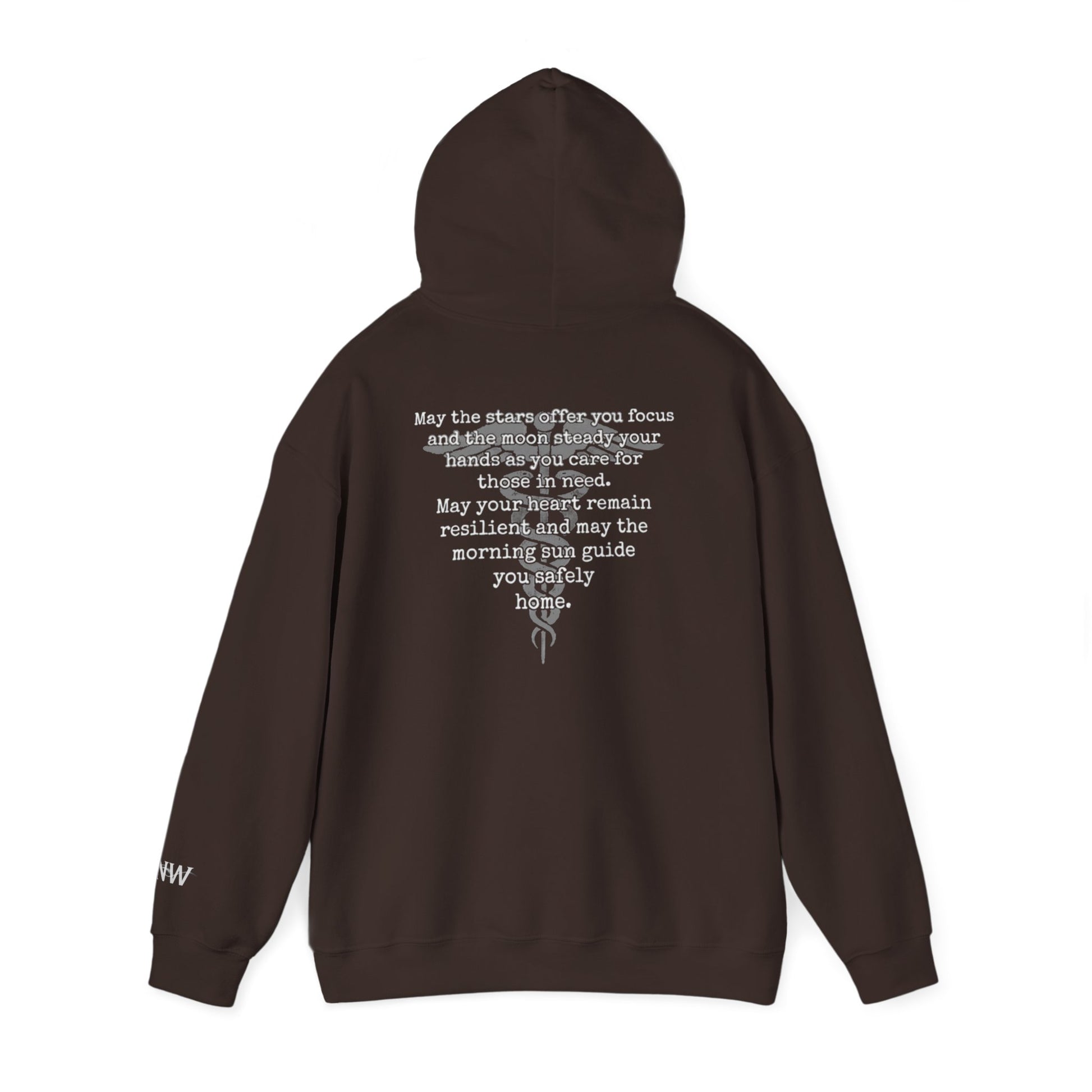 The night shift is a different world. It requires a quiet strength, a steady hand, and a heart that can endure the silence and the chaos alike. We designed this hoodie as a wearable blessing for the EMTs, paramedics, CNA's, nurses, doctors and all others who carry the weight of caring for others under the moonlight.