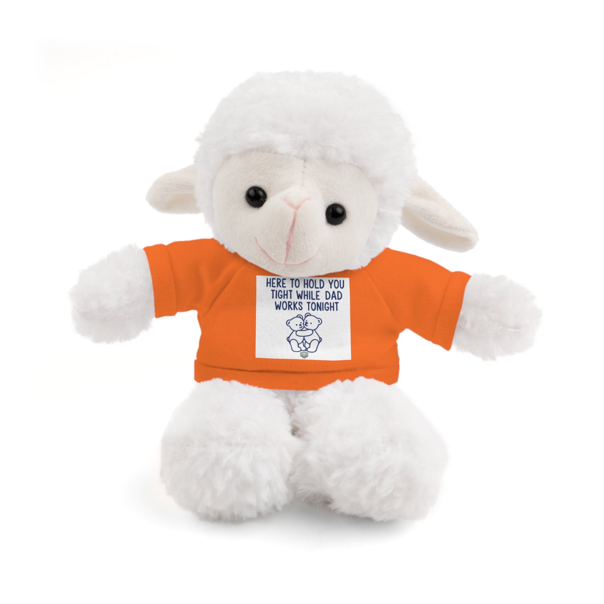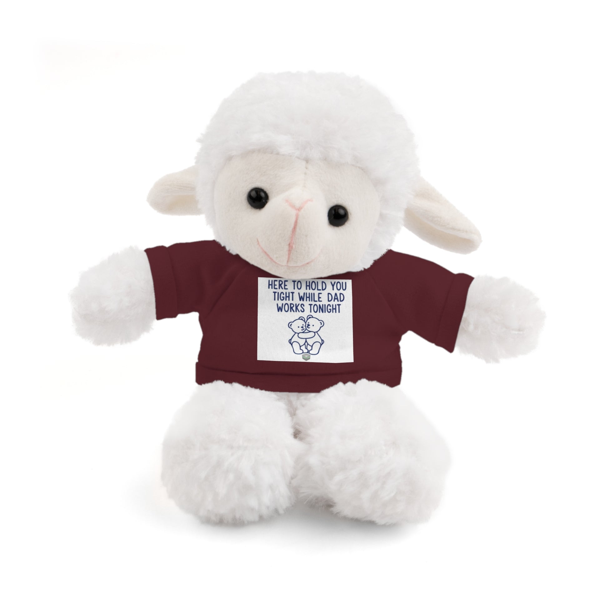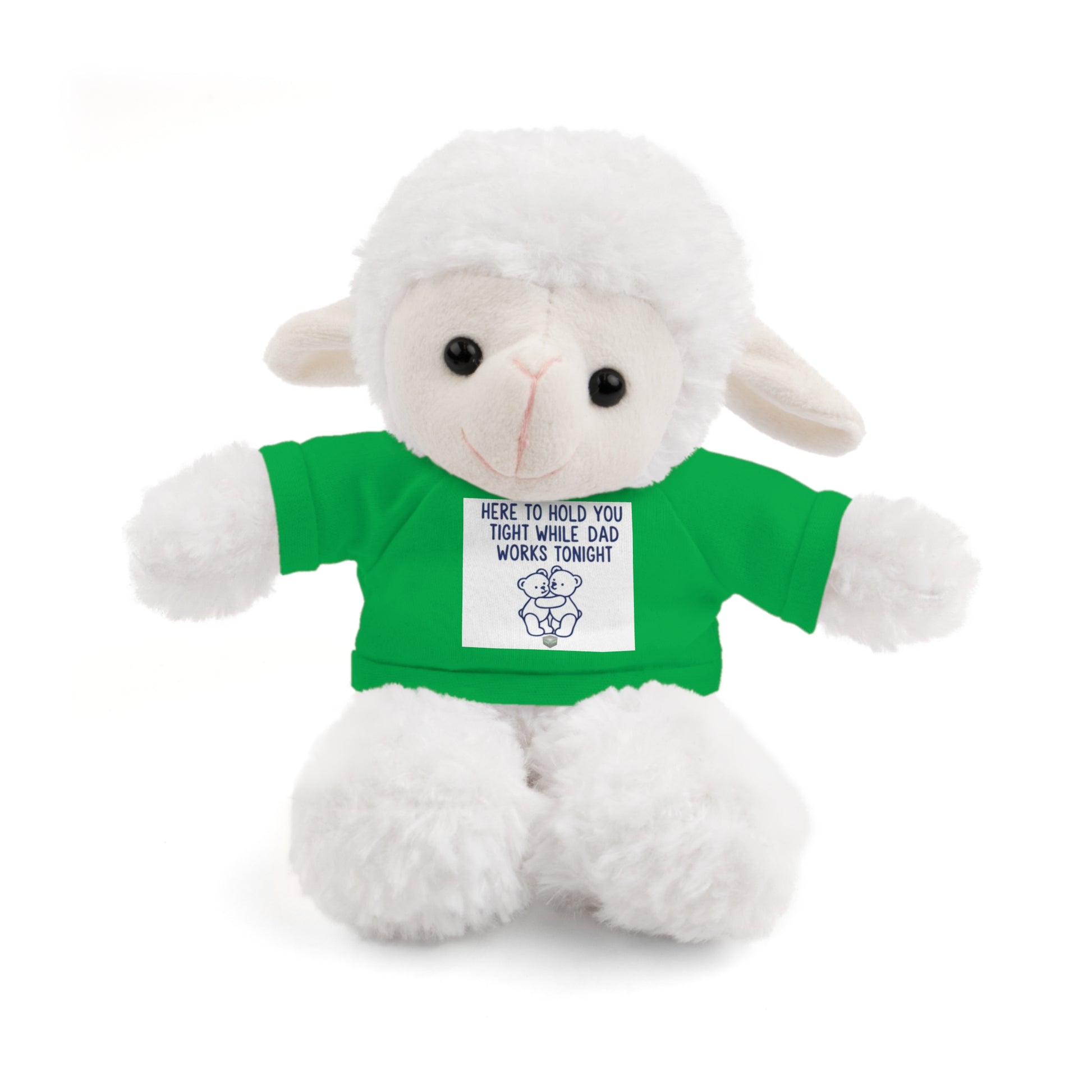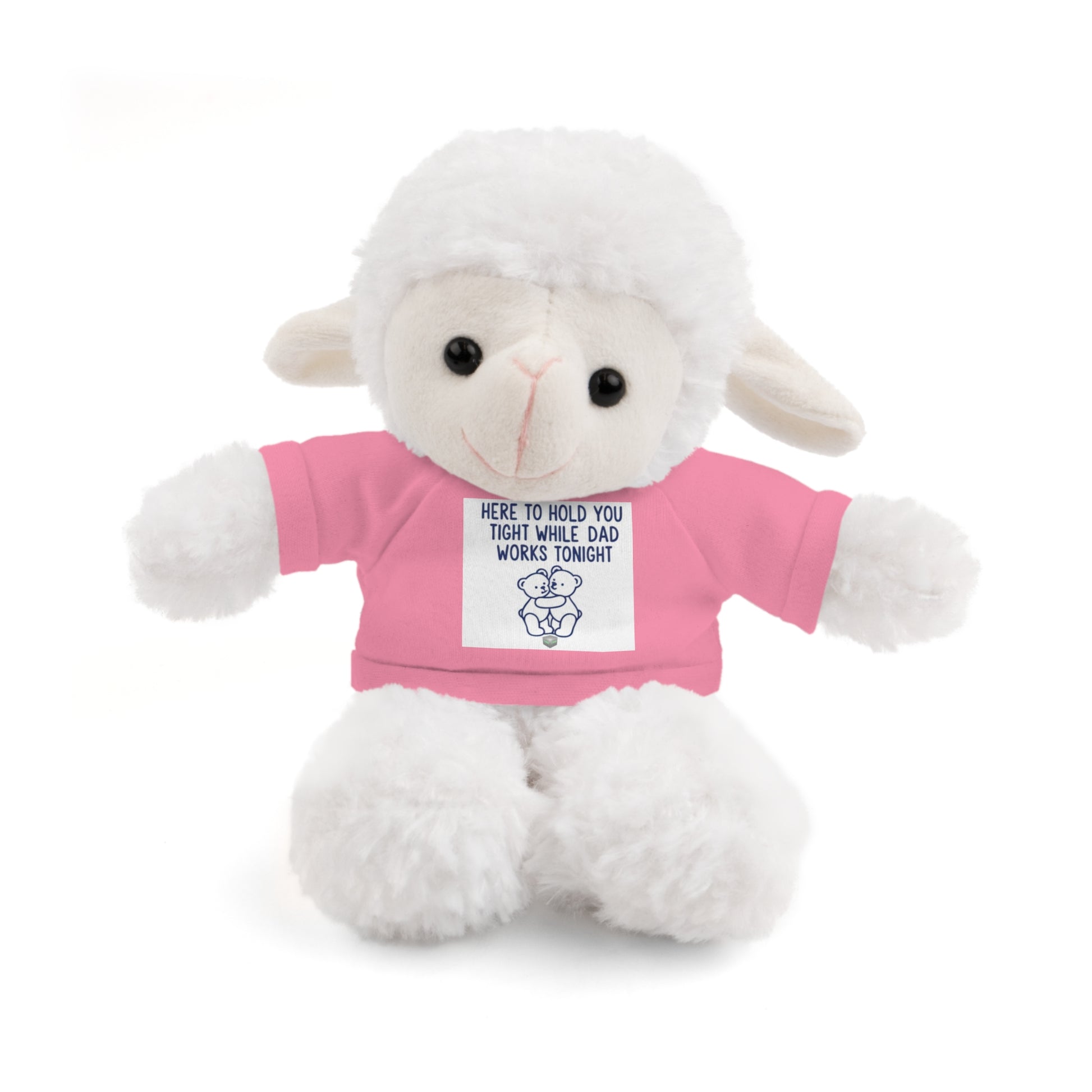 Choose from six sweet animals — Bear, Sheep, Bunny, Jaguar, Panda, or Lion — and pick the shirt color you love. The body is a cozy cotton/poly blend filled with soft polyester fiber and a few plastic pellets for a comforting weight. Sewn-in label and age-3+ safety make it an easy companion for bedtime stories, long car rides, or a quiet corner on a child's shelf.