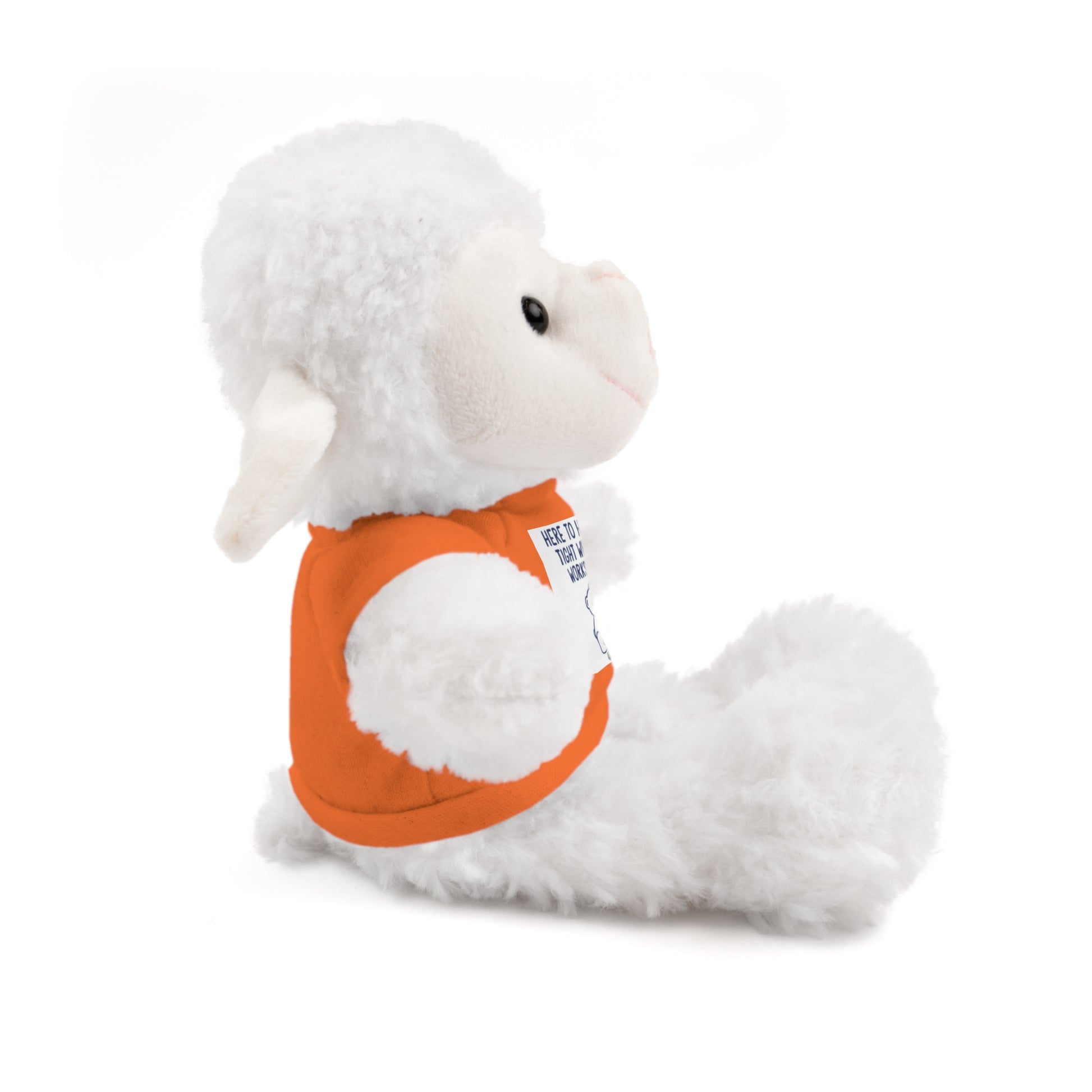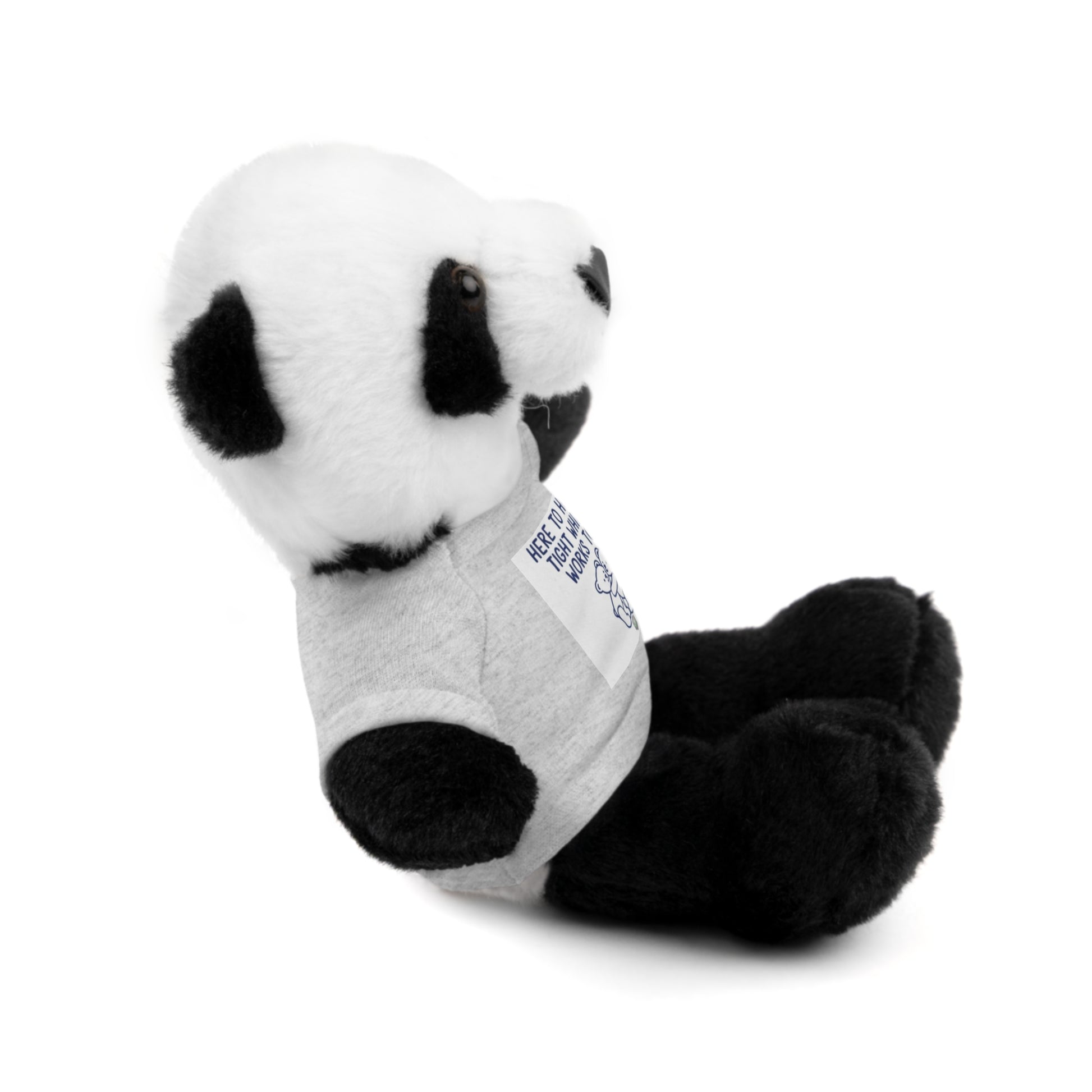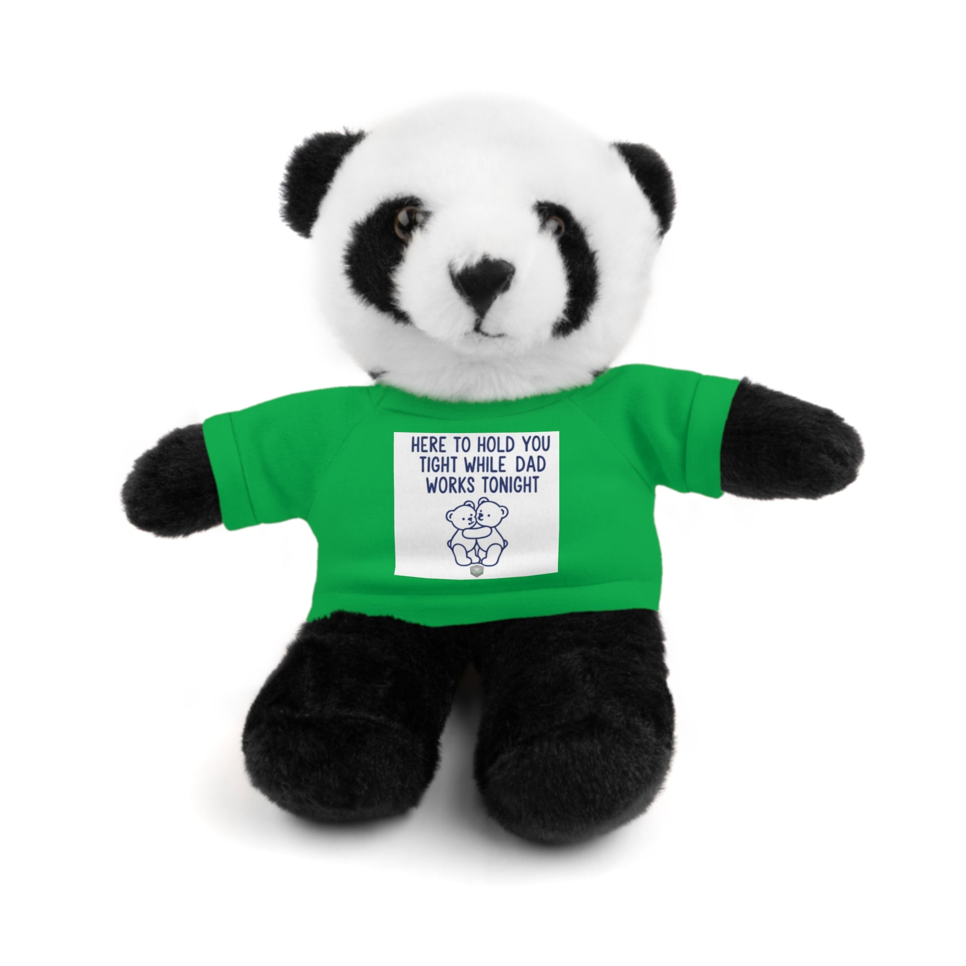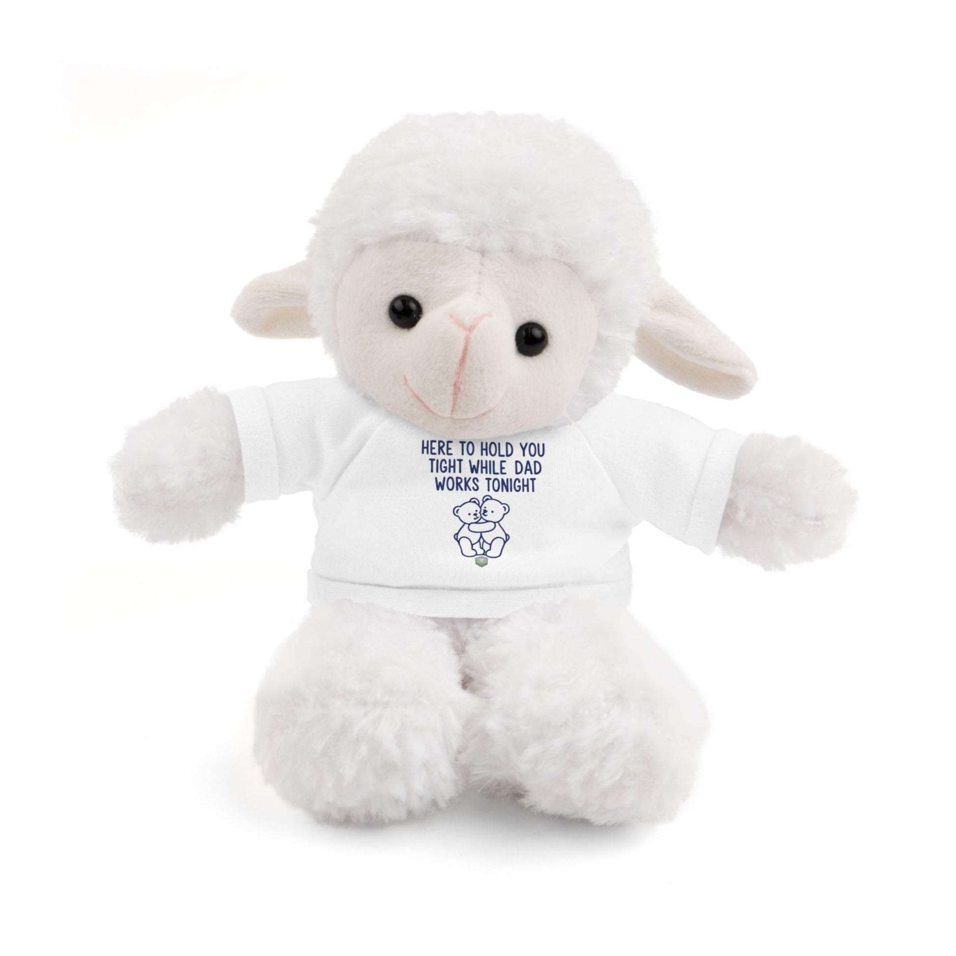 Choose from six sweet animals — Bear, Sheep, Bunny, Jaguar, Panda, or Lion — and pick the shirt color you love. The body is a cozy cotton/poly blend filled with soft polyester fiber and a few plastic pellets for a comforting weight. Sewn-in label and age-3+ safety make it an easy companion for bedtime stories, long car rides, or a quiet corner on a child's shelf.