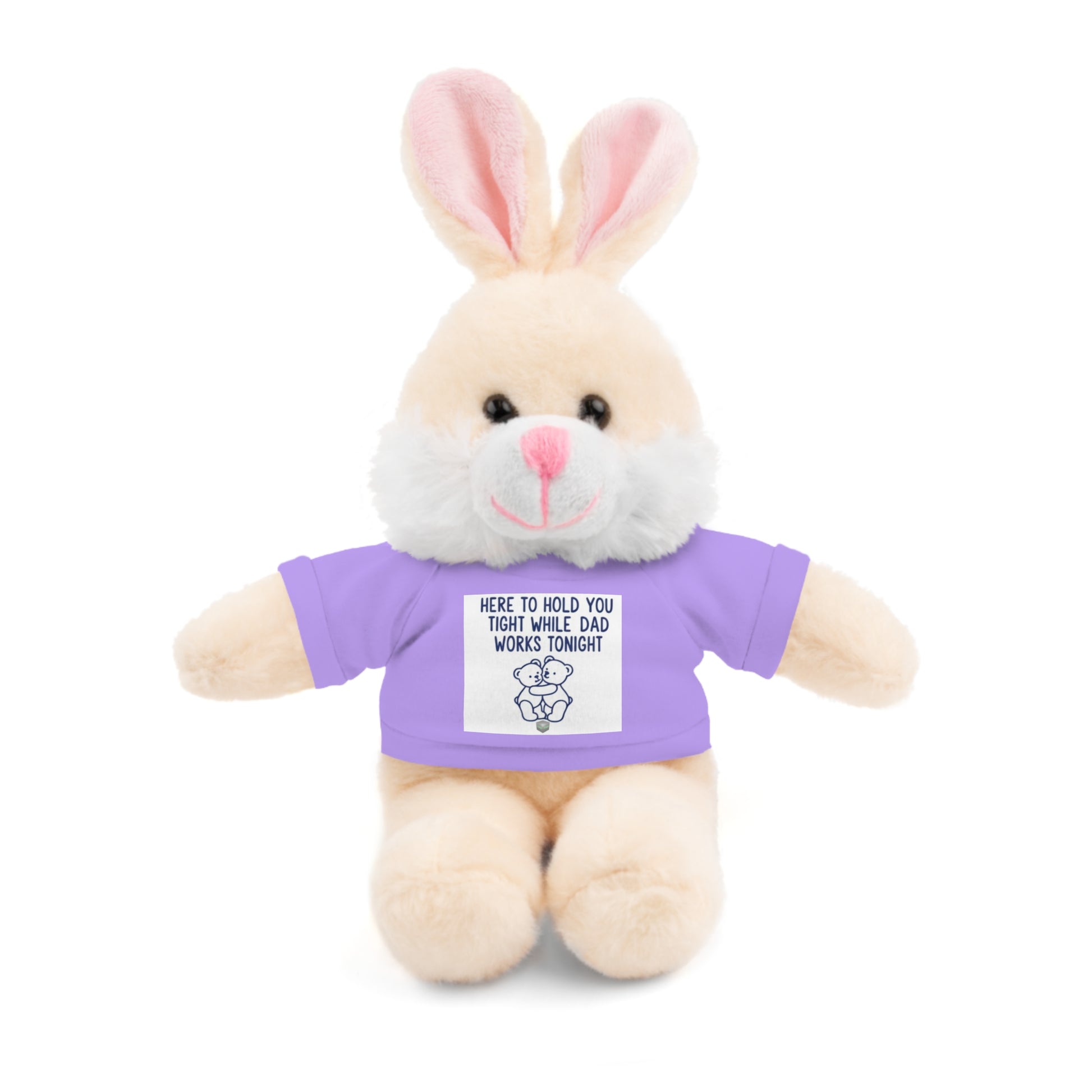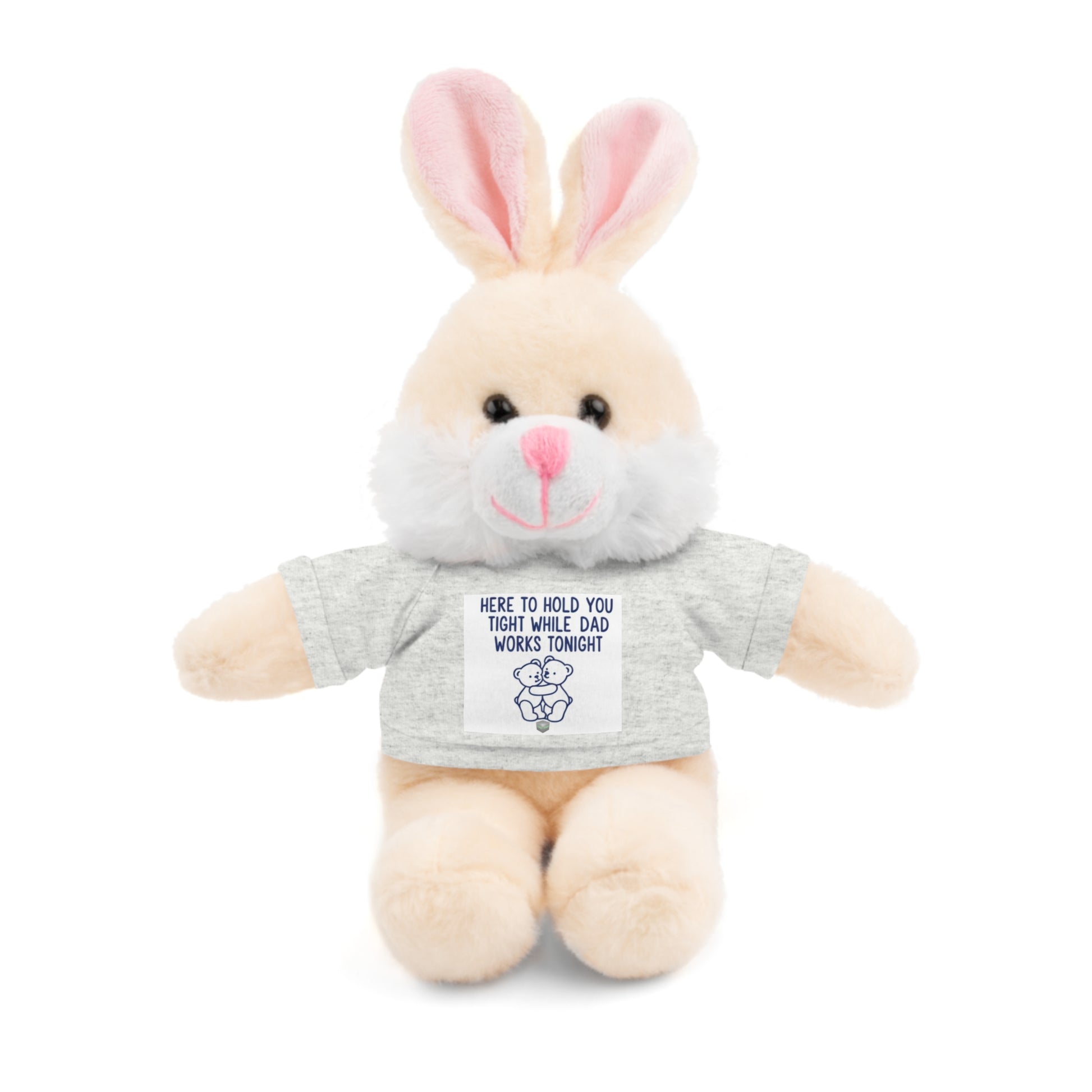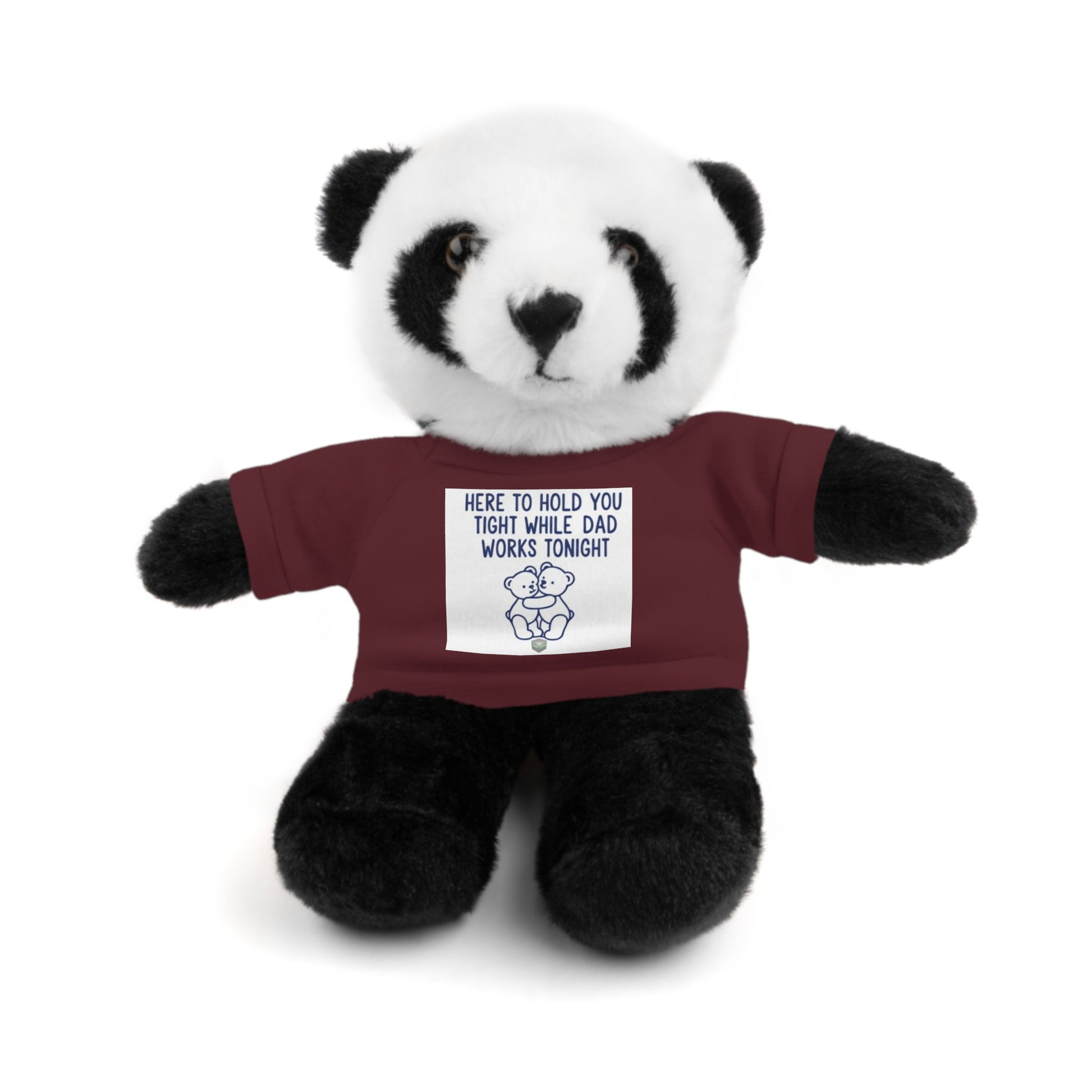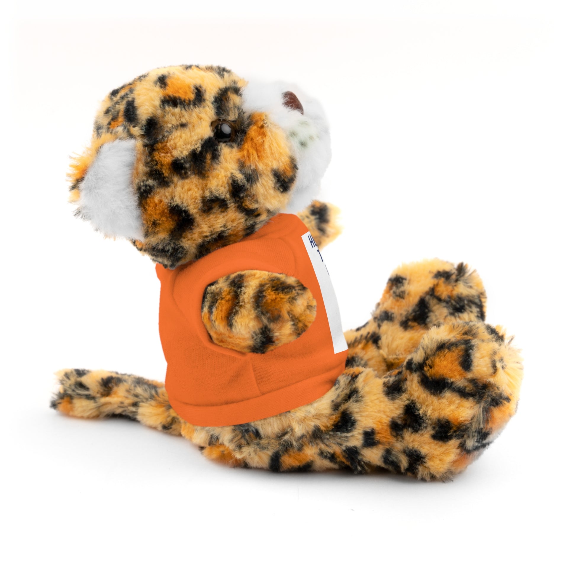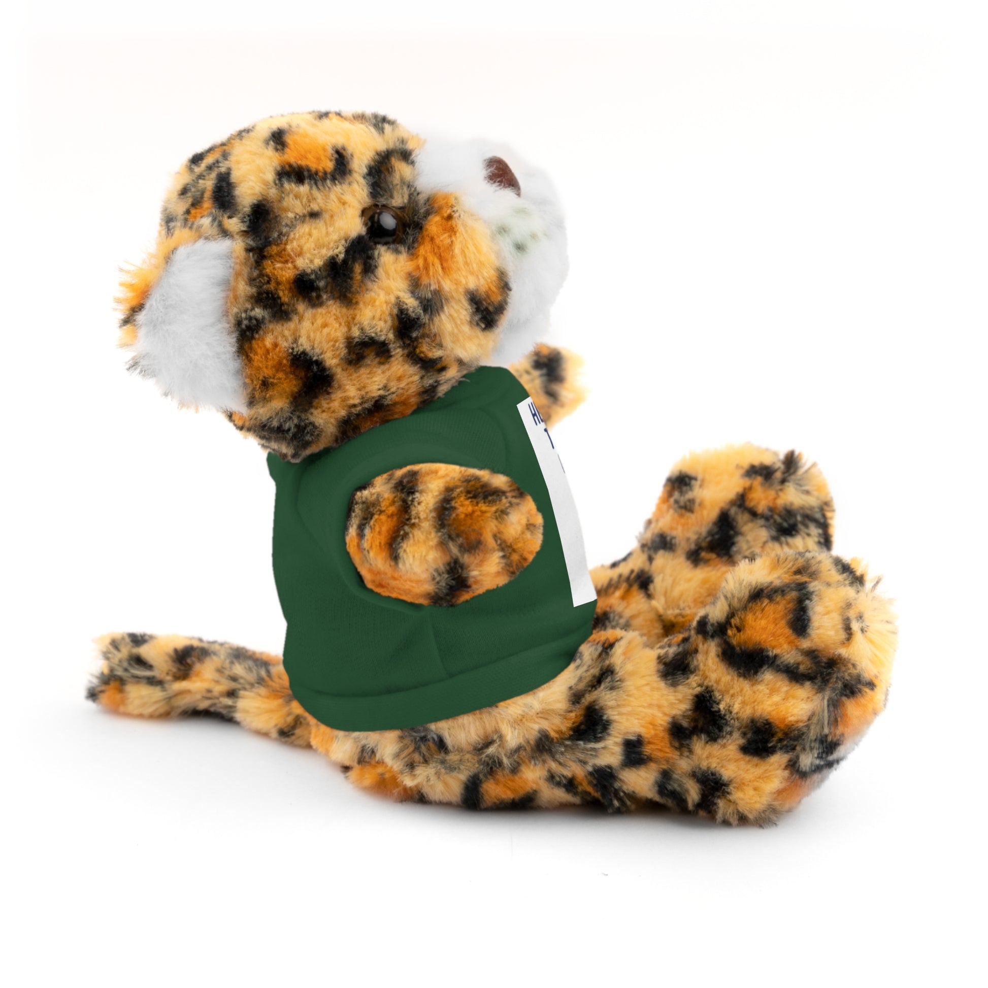 Choose from six sweet animals — Bear, Sheep, Bunny, Jaguar, Panda, or Lion — and pick the shirt color you love. The body is a cozy cotton/poly blend filled with soft polyester fiber and a few plastic pellets for a comforting weight. Sewn-in label and age-3+ safety make it an easy companion for bedtime stories, long car rides, or a quiet corner on a child's shelf.