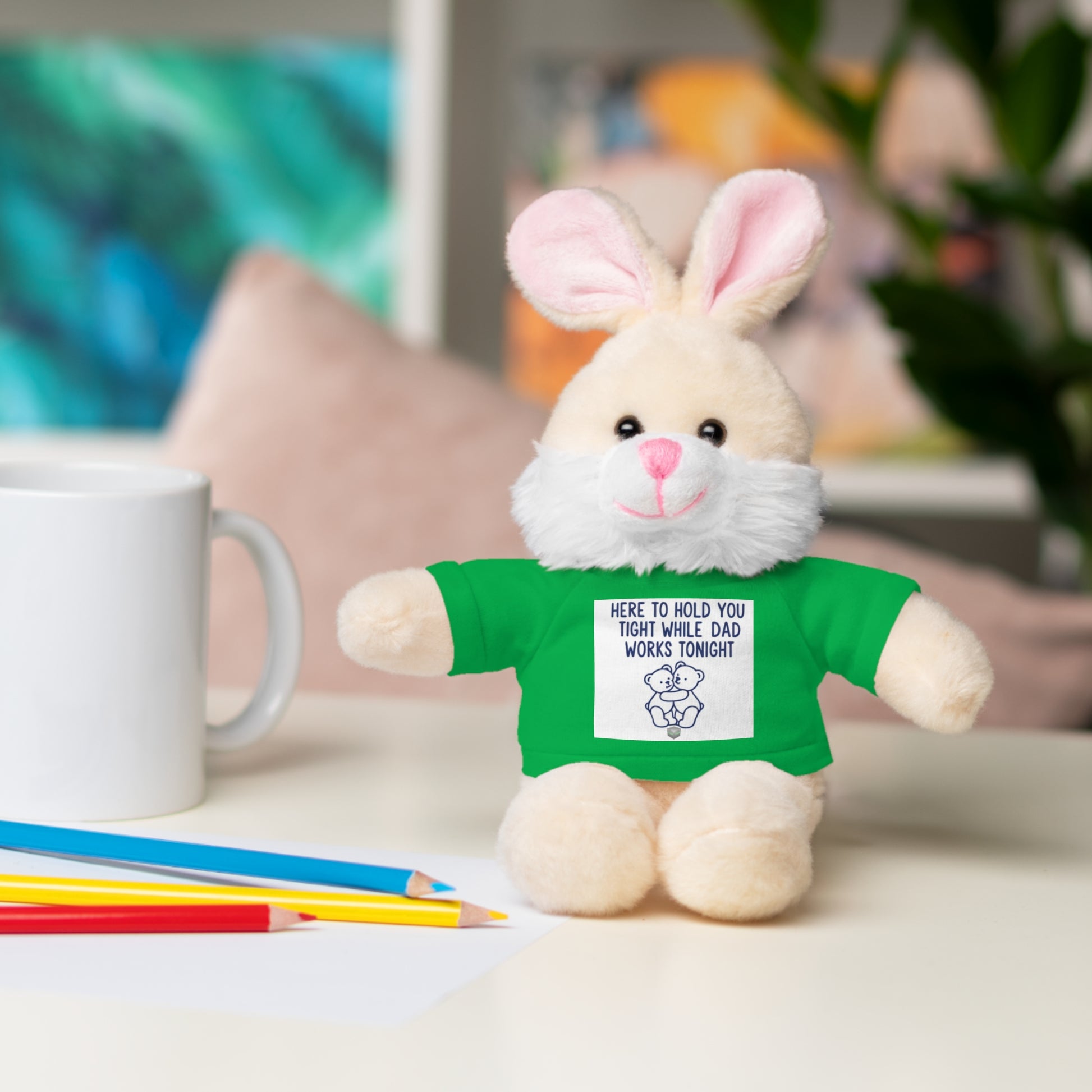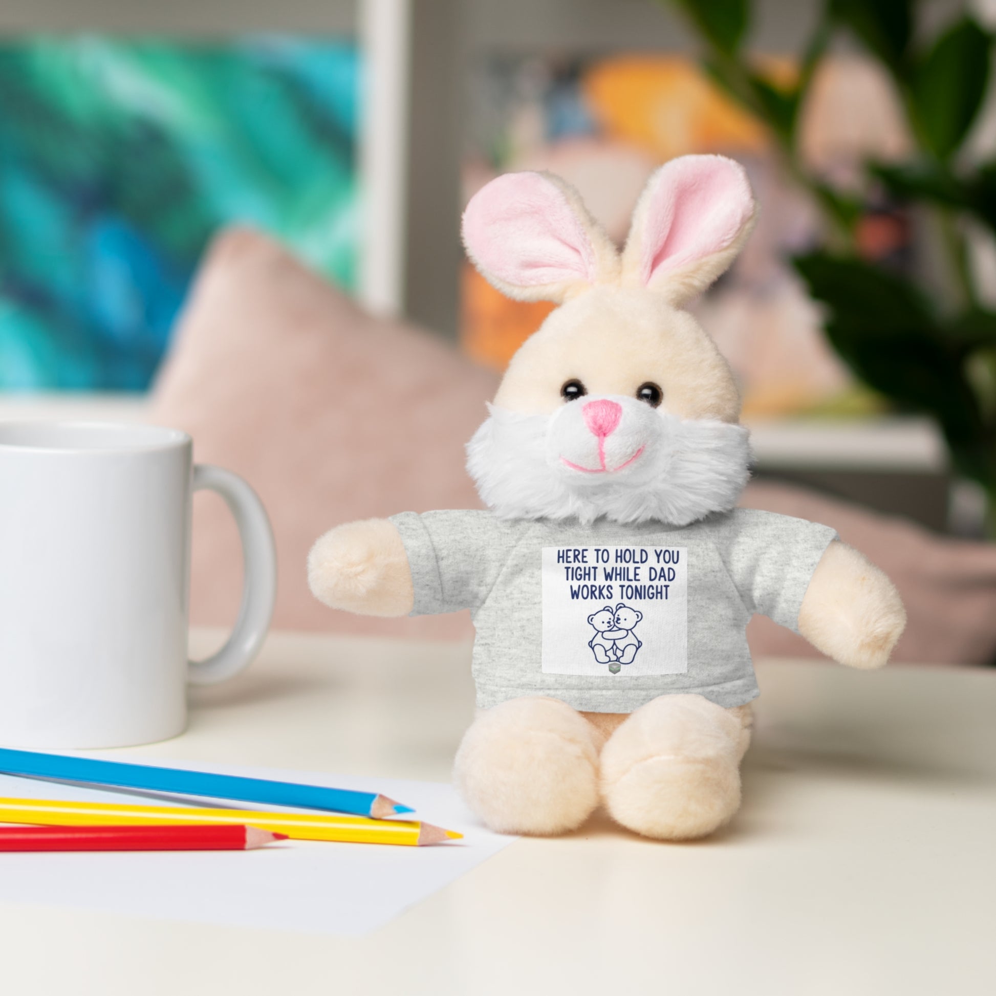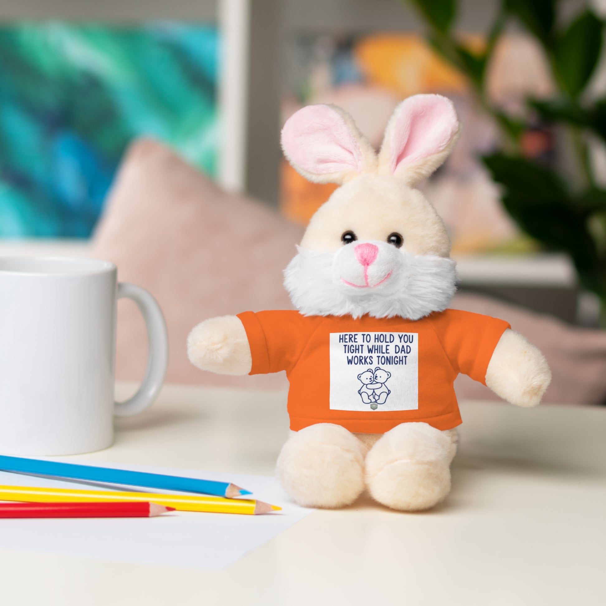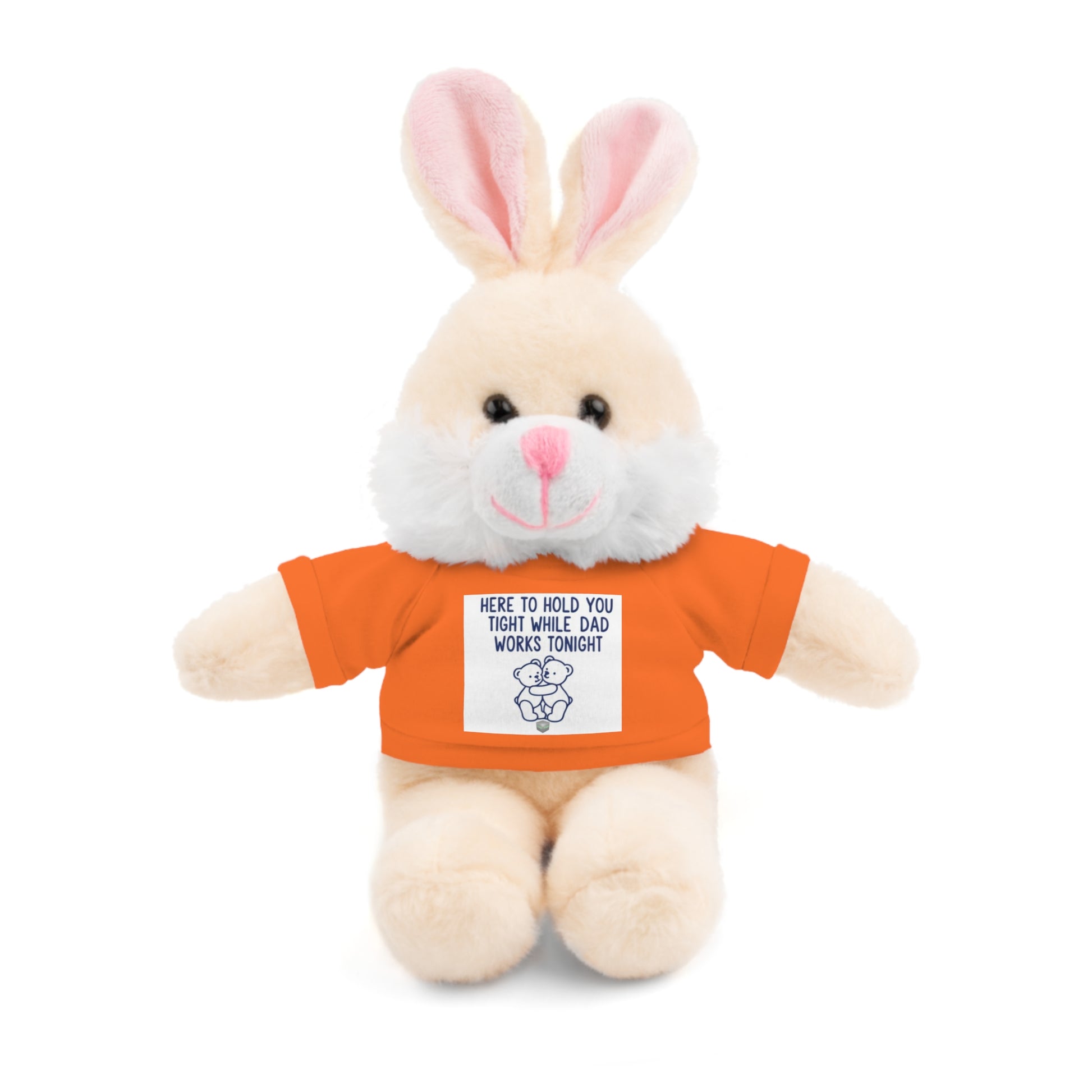 Choose from six sweet animals — Bear, Sheep, Bunny, Jaguar, Panda, or Lion — and pick the shirt color you love. The body is a cozy cotton/poly blend filled with soft polyester fiber and a few plastic pellets for a comforting weight. Sewn-in label and age-3+ safety make it an easy companion for bedtime stories, long car rides, or a quiet corner on a child's shelf.