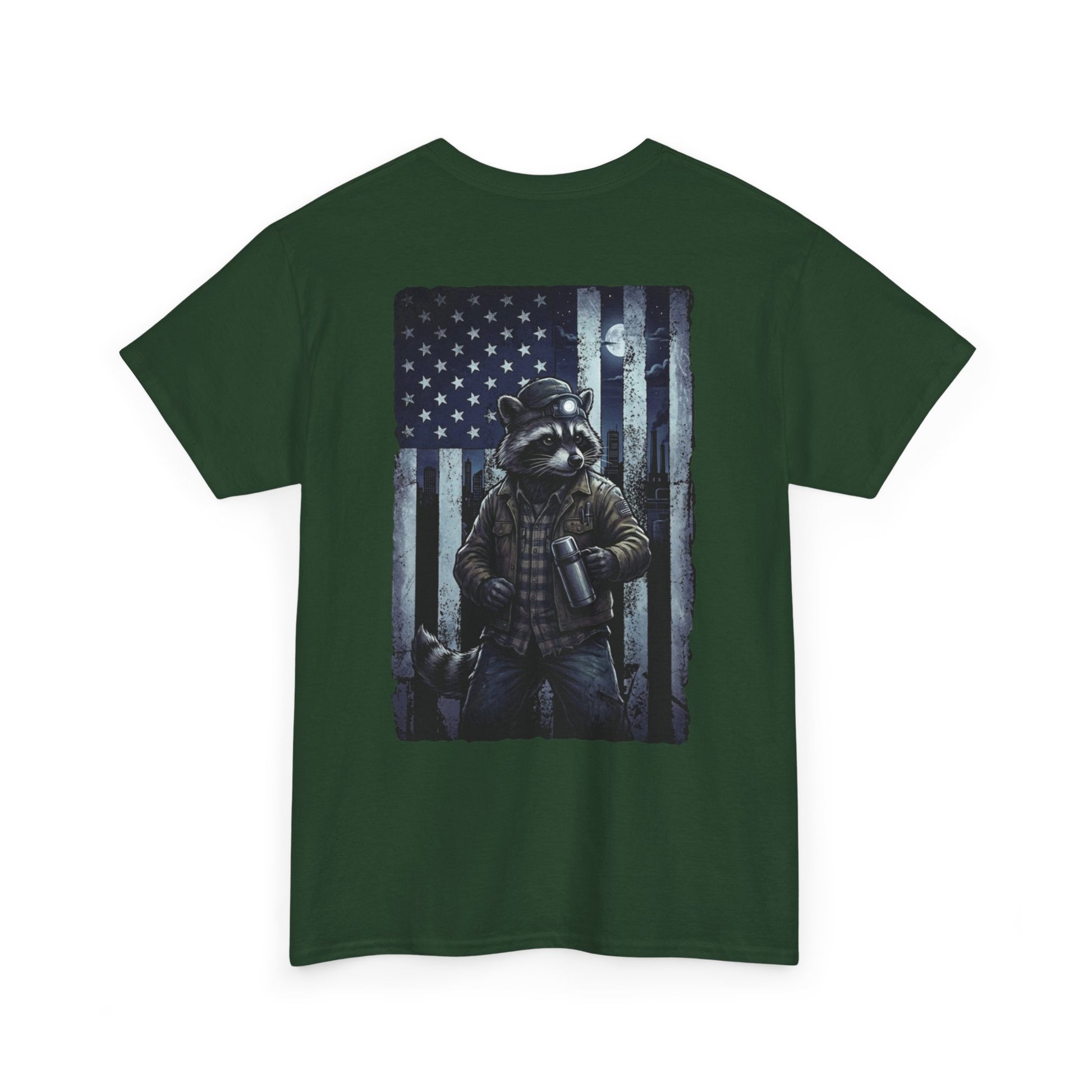 This design is a salute to the unseen workforce that keeps the gears turning while the sun is down. Featuring our signature gritty raccoon—the ultimate nocturnal operator—geared up with the night shift essentials: a headlamp for the dark corners, a wrench for the hard work, and a heavy-duty thermos because sleep isn't an option.