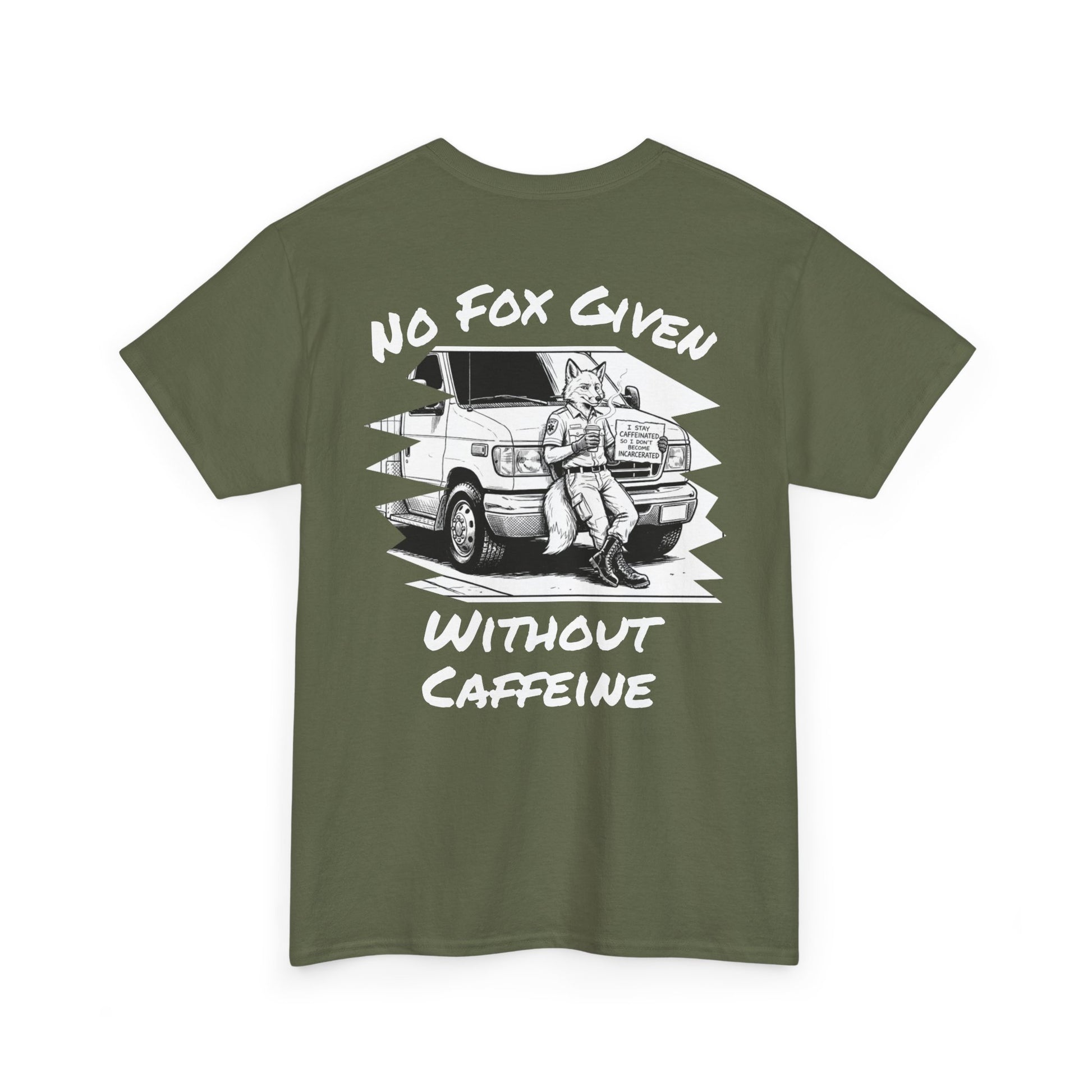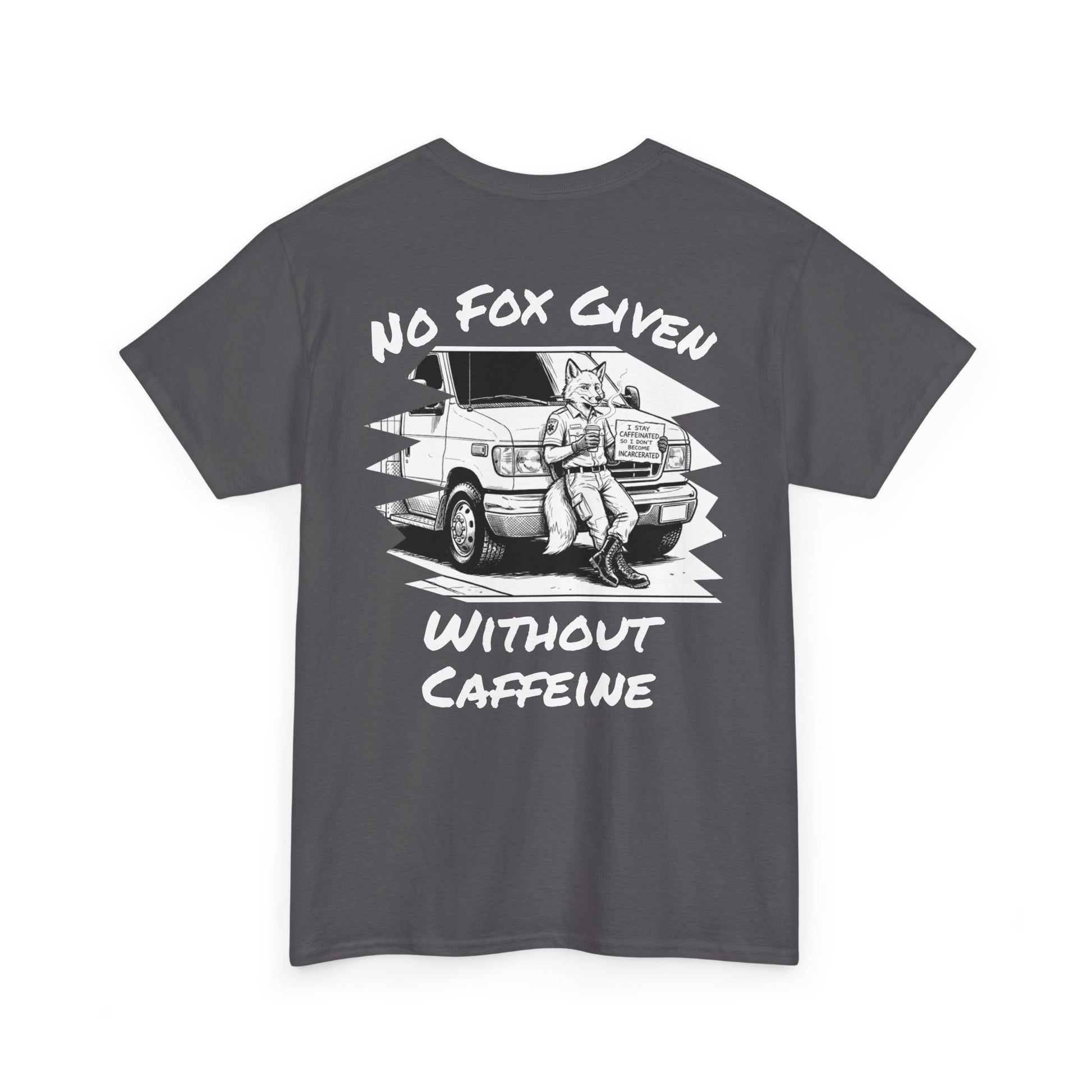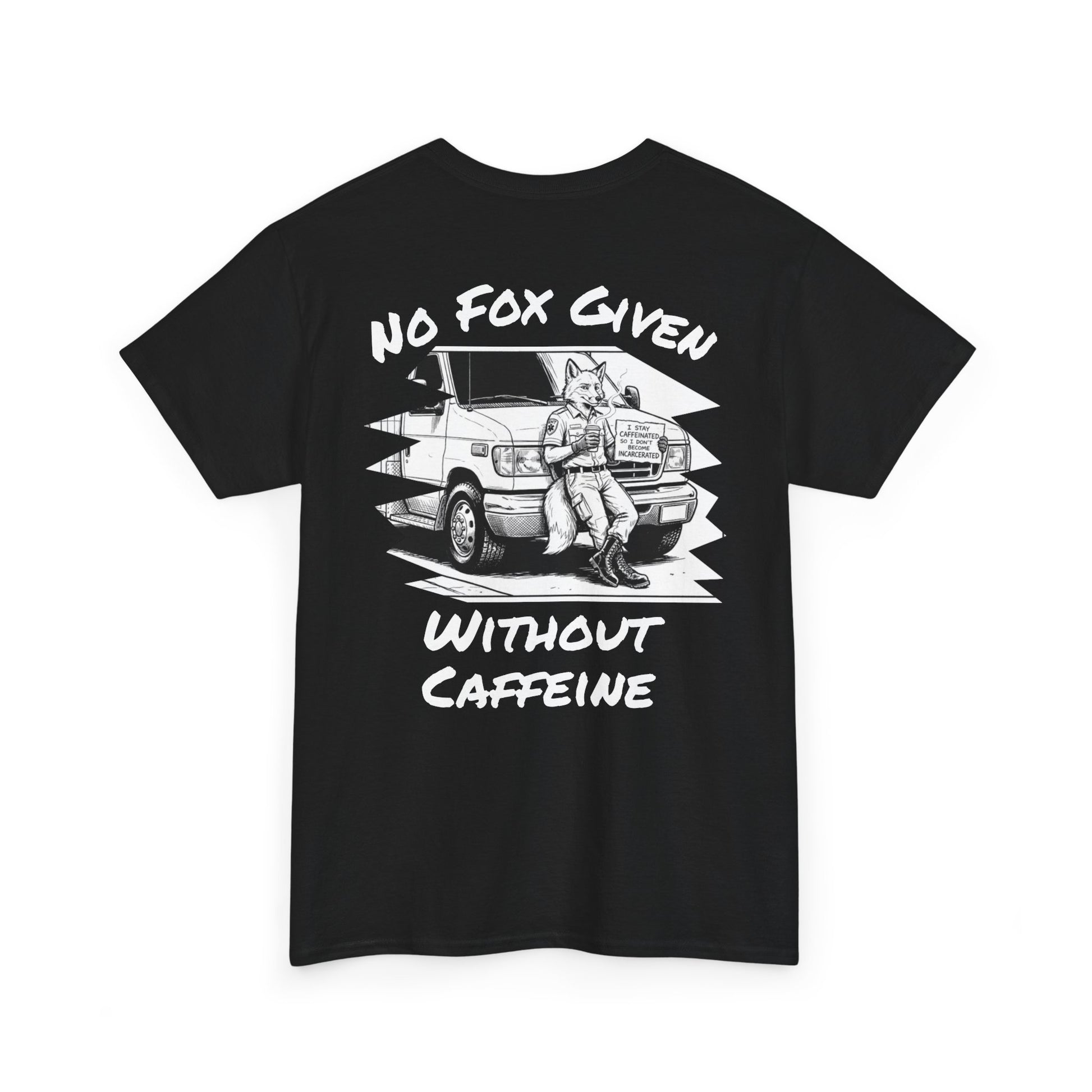 - Back: Large-scale "No Fox Given Without Caffeine" graphic featuring our uniformed fox mascot.